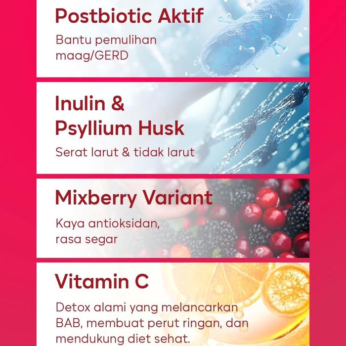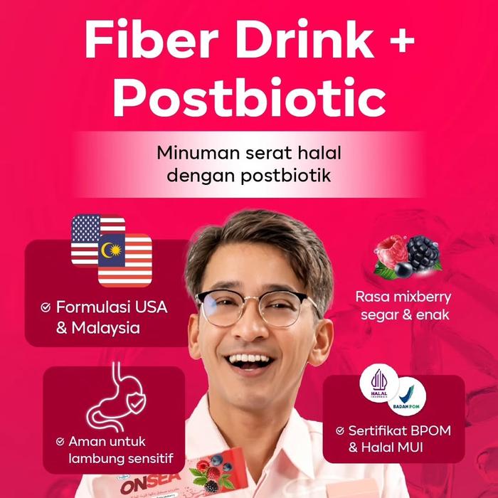 Minuman serat + postbiotik ONSEA memiliki rasa Mixed Berries yang segar, tidak pahit dan tidak bikin enek, nyaman dikonsumsi kapan saja.