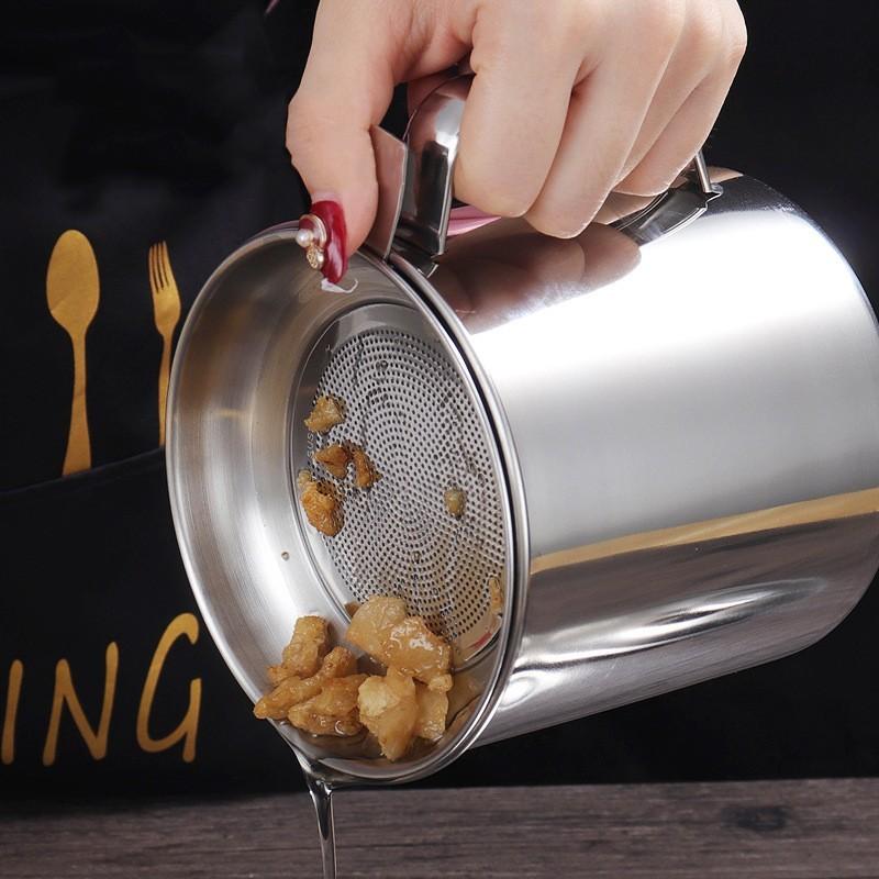 sebagai wadah penyaring minyak juga mudah dibersihkan. wadah untuk menyimpan balik minyak goreng setelah Anda selesai menggoreng makanan.Dilengkapi penyaring stainless steel yang rapat sehingga ampas atau sisa makanan yang digoreng akan tersaring keluar dan tidak mengendap bersama minyak goreng.