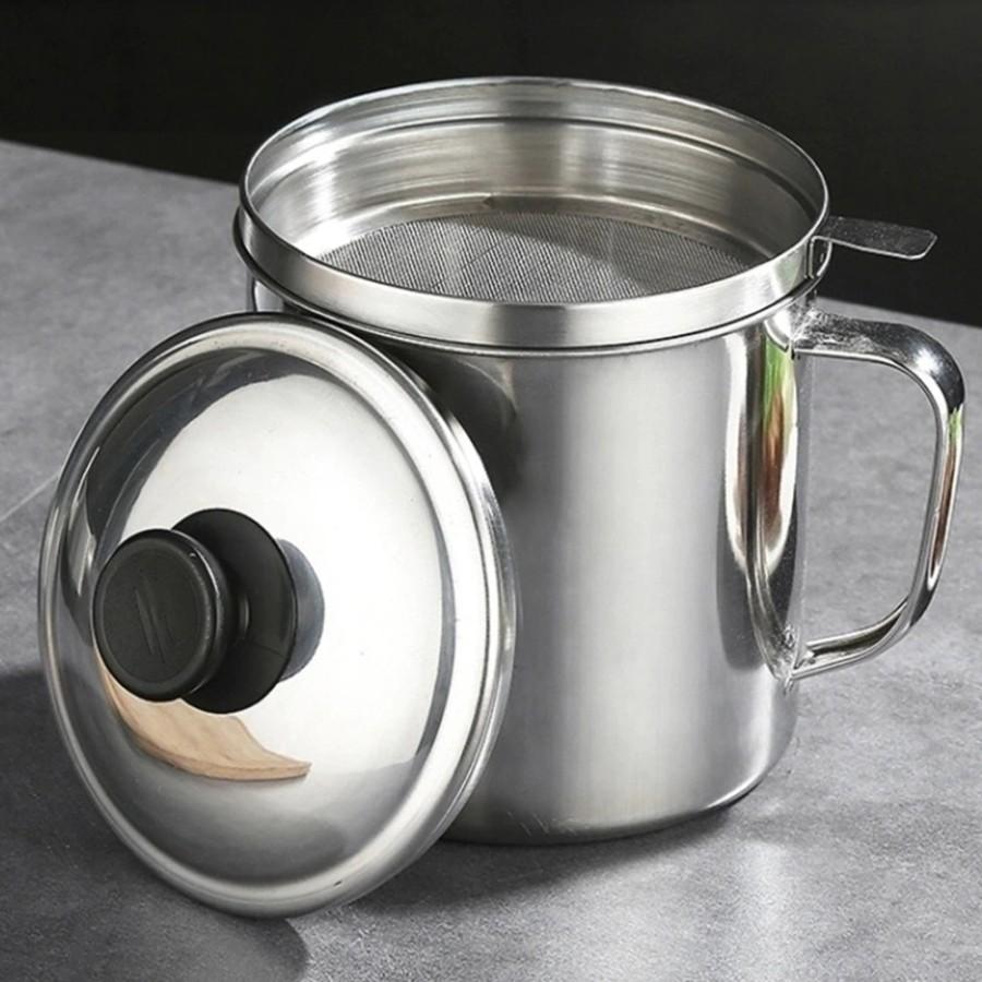 penyaring minyak tempat saringan minyak oil pot stainless steel 1.3L